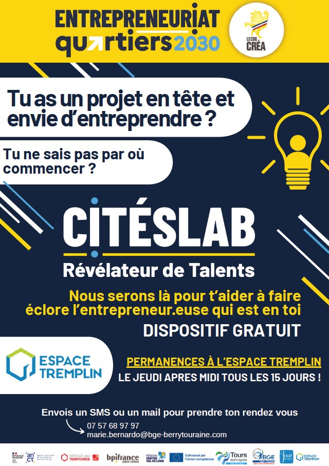 Vous avez une idée, un projet, ou vous êtes déjà en train de créer votre activité ? L’Espace Tremplin de Joué-lès-Tours vous accompagne à chaque étape de votre parcours entrepreneurial.