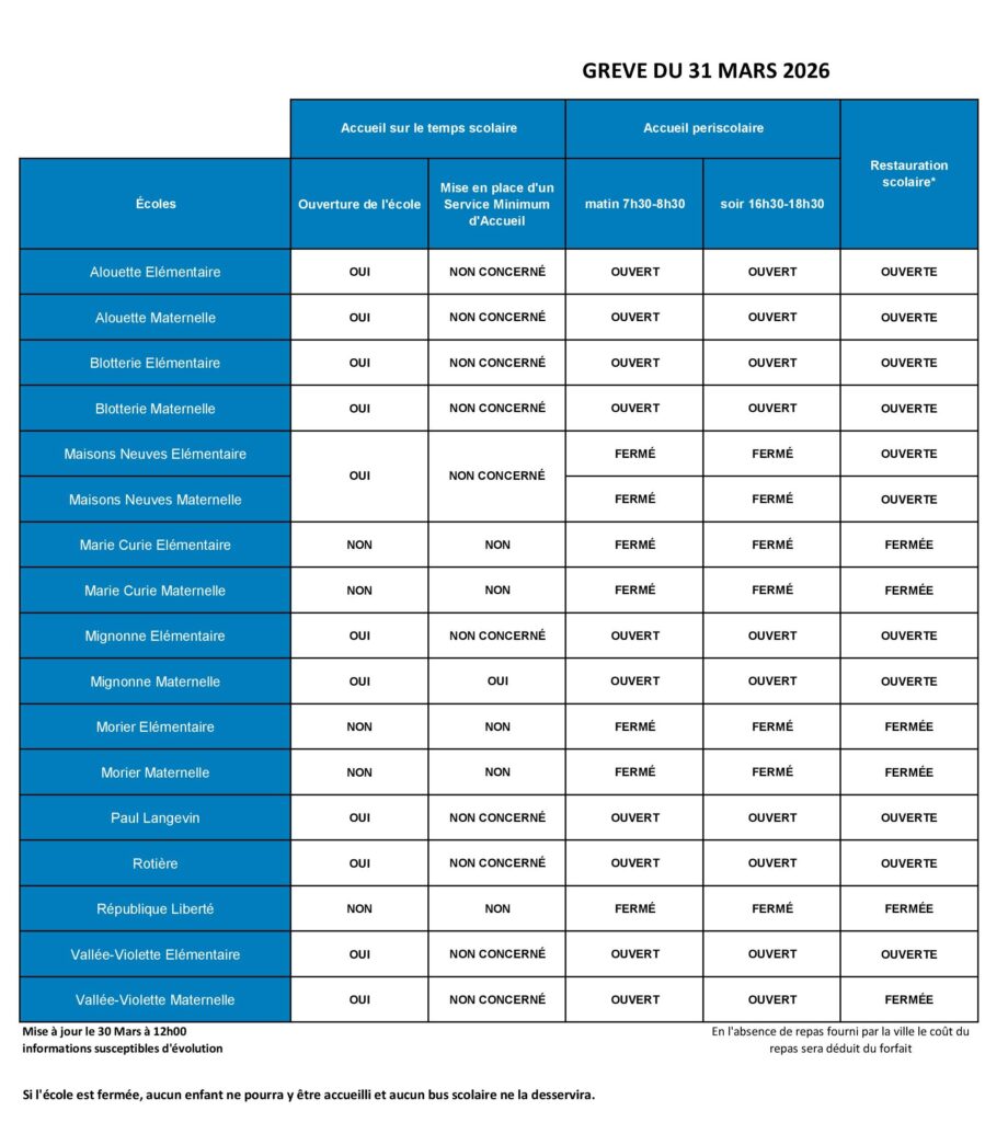 Le mouvement social national du 31 mars risque de provoquer des perturbations au sein des services municipaux. Retrouvez ci-dessous le tableaux des perturbations.