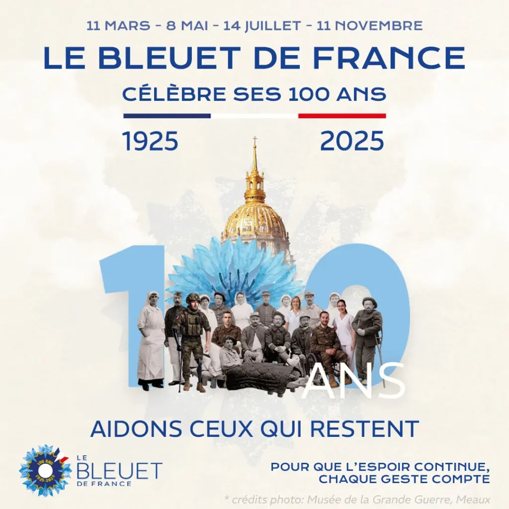 L’année 2025 est marquée par le centenaire de la création du bleuet de France. Cette fleur nationale rend hommage aux combattants tombés pour la France et soutient les blessés, les victimes de guerre et de terrorisme ainsi que leurs proches.