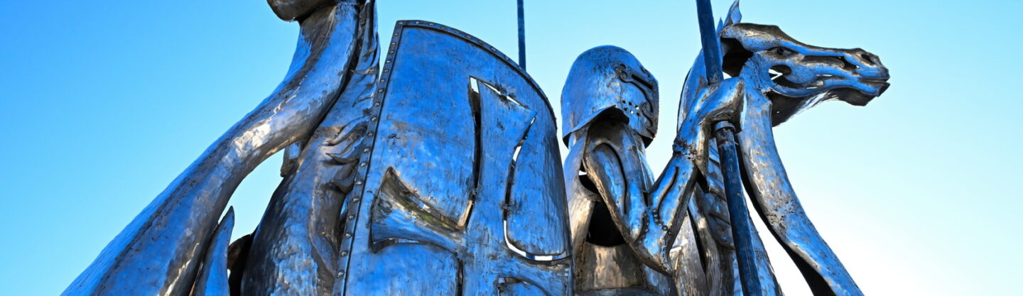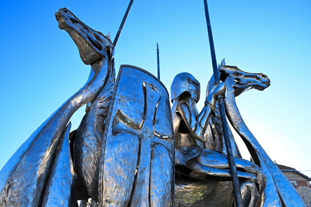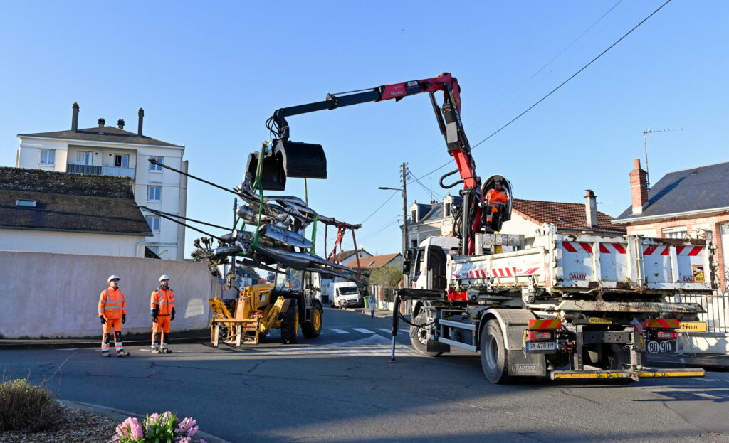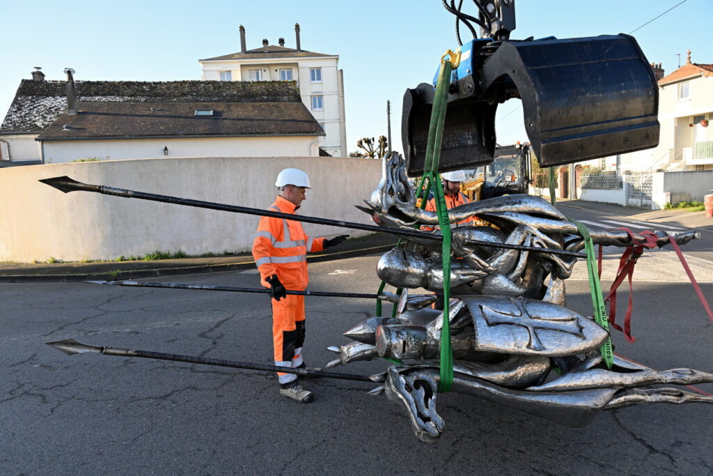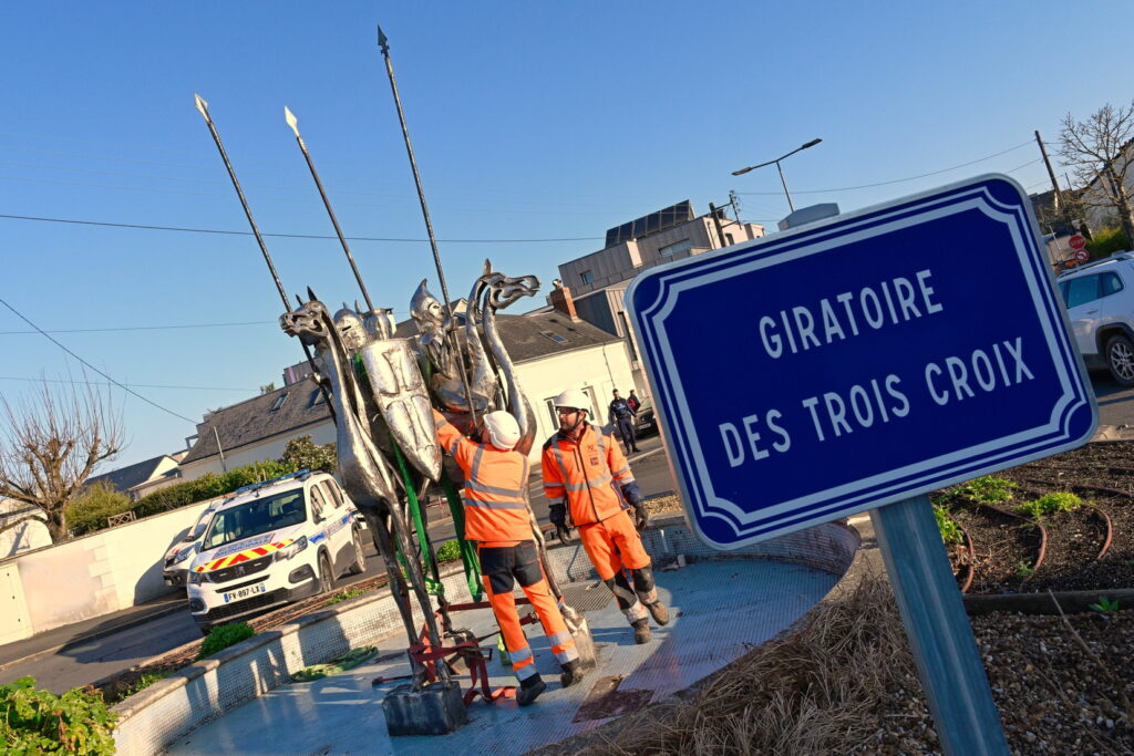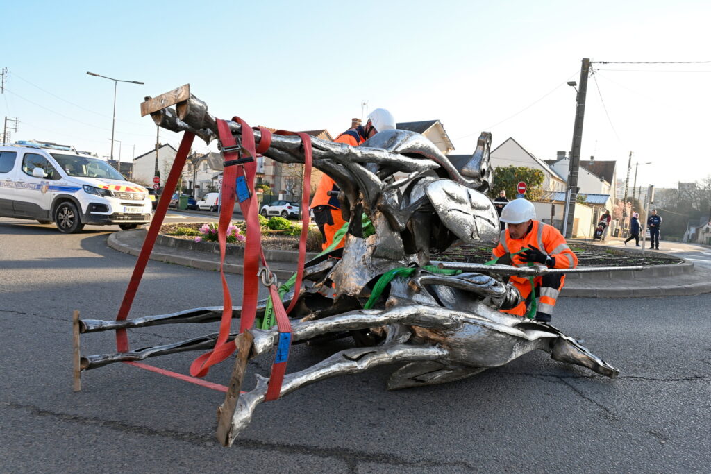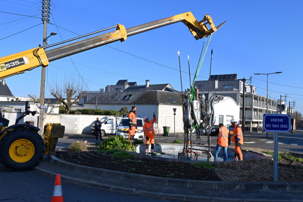 L’œuvre des trois cavaliers qui étaient situés sur le rond-point des Trois Croix a été installée ce matin !