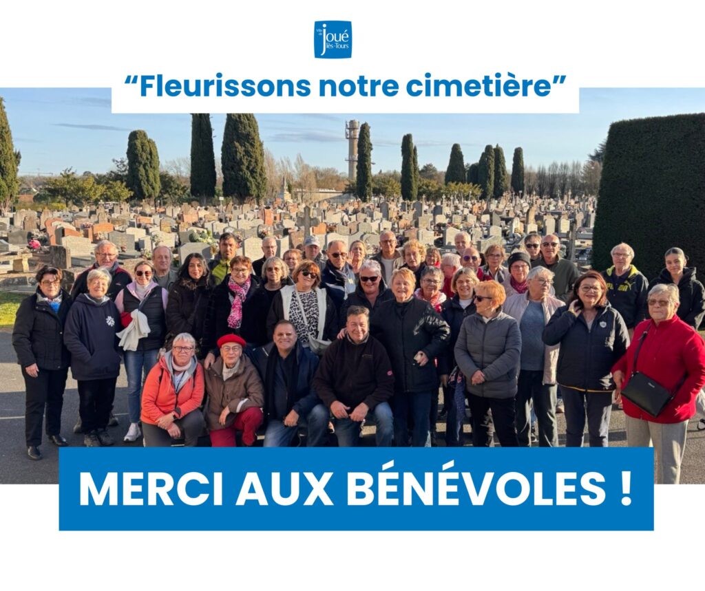 La Ville de Joué-lès-Tours tient à remercier chaleureusement les bénévoles qui se sont mobilisés pour retirer les chrysanthèmes déposés sur chaque tombe en octobre dernier dans le cadre de l’opération « Fleurissons notre cimetière », chrysanthèmes désormais fanés.